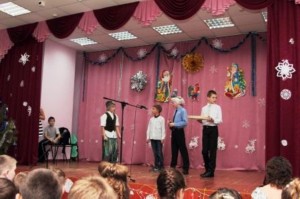 Праздник начался с поздравления заместителя директора по УВР Мелькиной Л.Н. Она пожелала успехов в новом году и, подводя итого уходящего года, вручила грамоты за успехи в учебе и участие в мероприятиях различного уровня.