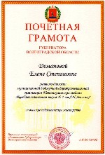 В 2014 году стала победителем конкурсного отбора лучших молодых учителей образовательных организаций Волгоградской области, обладателем гранта Губернатора Волгоградской области.